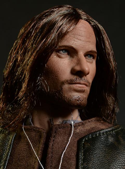 The rest of the sculpt really shines. They have wrinkled up the forehead a bit more than usual. From the eyebrows down, it is an extremely good portrait, perhaps the best seen at capturing the look of Viggo as Aragorn in plastic.