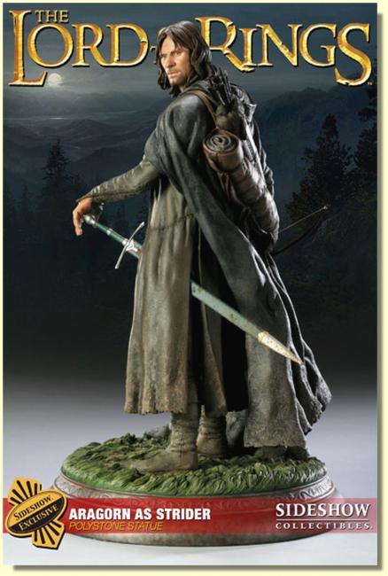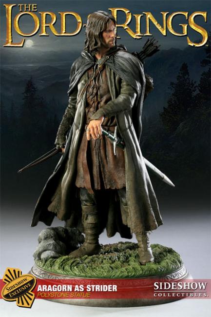 Launching Sideshow s line of The Lord of the Rings collectibles, the Aragorn as Strider Statue captures the essence of this dynamic character as the hooded ranger. Offering a maquette style study of the veiled heir of Isildor, each piece is individually painted and finished, each with its own unique quality and detail that is the trademark of a handcrafted Sideshow Collectibles product.