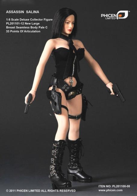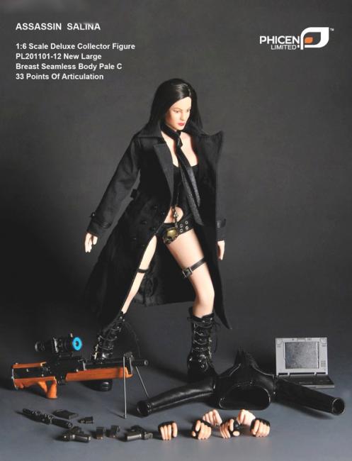 Salina the female assassin with a 1 : 6 scale seamless Body comes with a wealth of accessories: