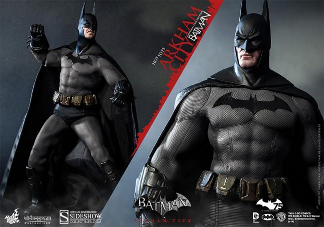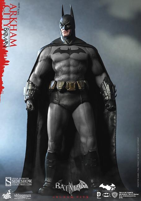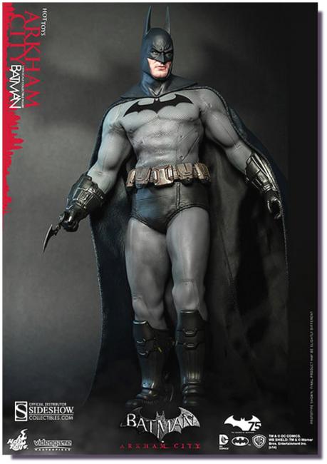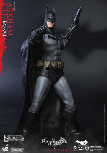 So it goes the Batman: Arkham City Batman sixth scale figure. The collectible figure is specially crafted based on the image of Batman from the game, and features a newly developed masked head sculpt with 2 interchangeable lower faces, newly sculpted muscular body and Batsuit, and detailed weapons.