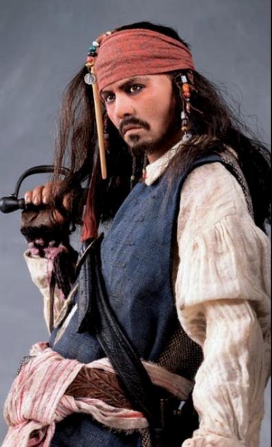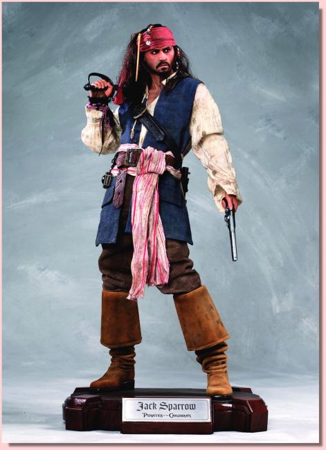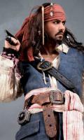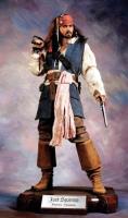 Captain Jack Sparrow stands defiant, ready to take on the world, or at least pick its pocket and sneak out the back door! Constructed of polyurethane composite with realistic silicon skin, the Captain Jack Sparrow Cinemaquette s head is individually punched with real human hair, and features film-accurate clothing and weapons, authentic in every detail.