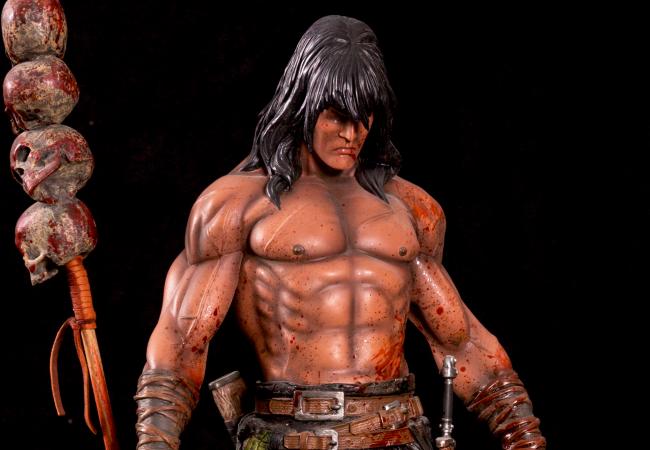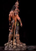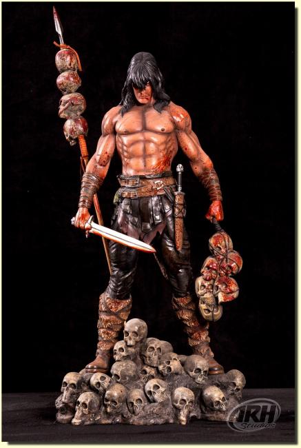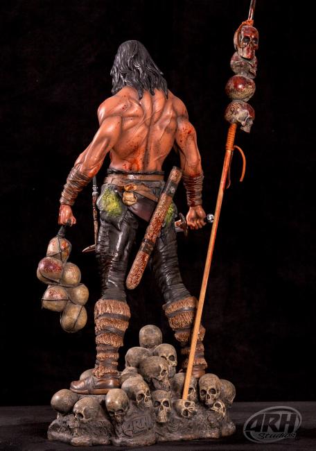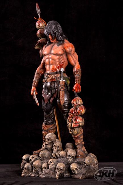 In this great 1/4th scale statue sculpted and painted by Arahom Radjah, we have Conan standing on a pile of skulls of former opponents!