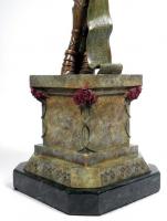This piece is a bronze casting of the original cold-cast porcelain sculpture by Clayburn Moore. Each piece is produced in the traditional lost wax method and hand-finished with painstaking attention to detail, and include sophisticated patinas. The statue sits atop a rich green/black polished marble base.