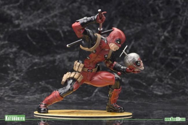Soška Deadpool vytvořená podle předlohy figurální řady Marvel Avengers to X-Men line series vycházející z grafického návrhu ARTFX+ Statues lineup je vysoká cca 15 cm s detailním zpracováním.