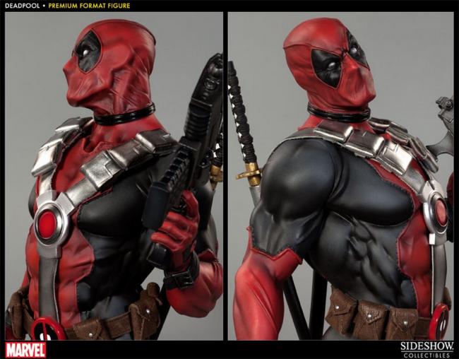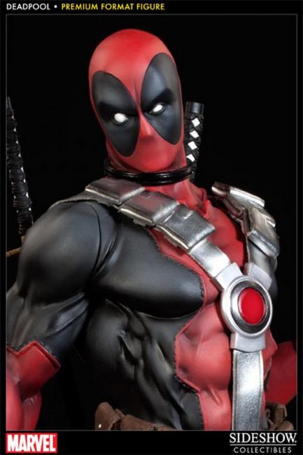 Marvel s Merc with a Mouth stands ready for action in the Deadpool Premium Format Figure from Sideshow Collectibles. Unmistakable in his trademark red and black costume, fully sculpted, the glib master assassin is girded for combat with weapons for any occasion.