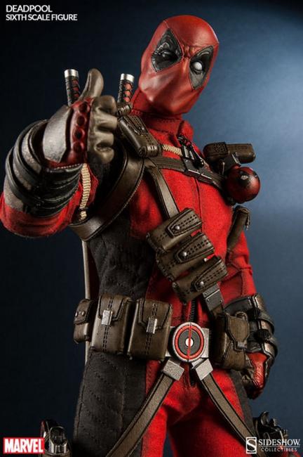 Armed to the teeth with guns, puns, and things that go boom, Sideshow s fully articulated Deadpool Sixth Scale Figure is ready to break through any obstacle - especially the proverbial fourth wall.