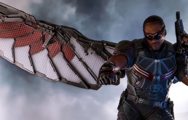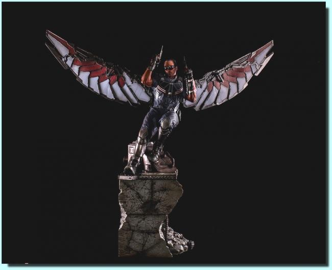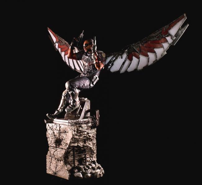 Soška Falcon vytvořená podle předlohy figurální řady the DC Comics Captain America: Civil War collection vycházející z grafického návrhu Legacy Scale Replica SCDD Teamu je vysoká cca 76 cm s detailním zpracováním.