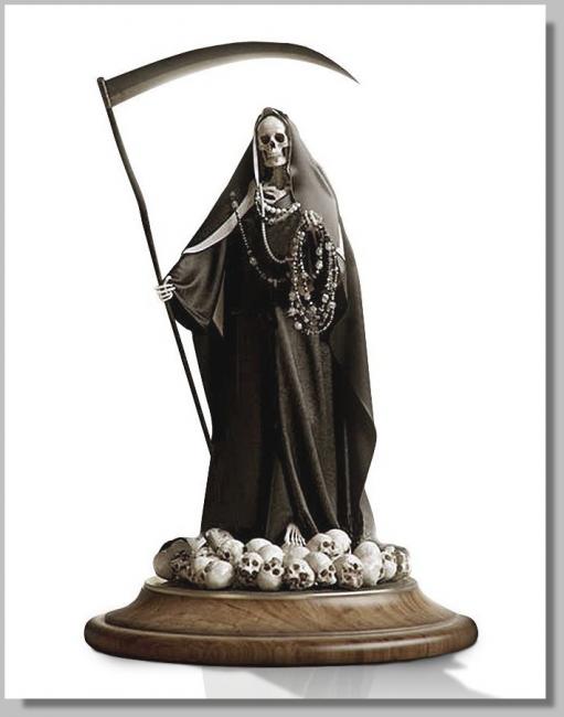 Particular care taken with fine detailing: faithful reproduction of the skulls, necklaces and scythe.