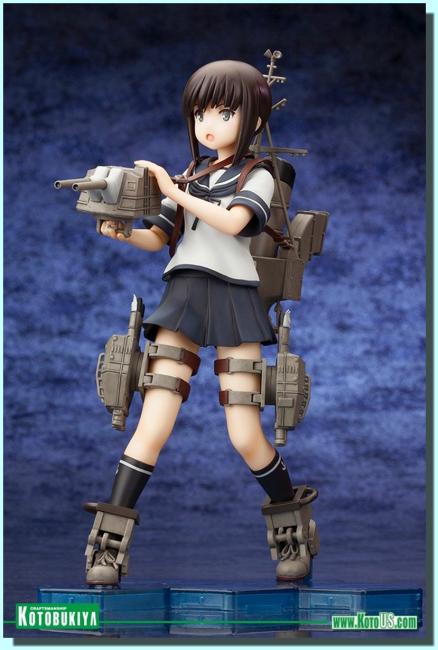 Fubuki is fully equipped and ready for battle with her turret and armor. The craftsmanship is apparent in all the fine details of this 1/8 scale sculpt, from Fubuki s weapons and armor down to the pleats of her school outfi. Fubuki stands 20 cm (nearly 8 inches) tall, great for display! Sail the seas with the fantastic ladies of KanColle (Kantai Collection), now joining the elite Ani*Statue series! The first anthropomorphic naval warship “fleet girl” to be captured in statue form is FUBUKI (“Blizzard”), representing the famous Japanese destroyer. Heading full steam into battle, she is fully equipped and ready with armor and weapons. Fubuki appears as a young girl wearing a traditional “sailor” style schoolgirl outfit with a white and dark blue shirt and matching pleated skirt, long socks, and shoes. But her warlike side is readily apparent with the additions of destroyer elements including a backpack of smokestacks and nautical equipment, torpedo launchers strapped to her thighs, reinforced feet, and a mighty double-barreled turret on her right wrist. Even with all of that weighing her down Fubuki prances in a cute pose, lightly stepping forward as she aims her turret with her left hand. This dynamic girl has a fantastic look and is equally detailed in her clothing and hair as she is in her technological and weaponry elements! And, she tops it all off with an adorable expression on her little face. Sculpted by Kaoru Sakaki, Fubuki stands just under 8 inches tall (1/8 scale) on a specially designed base. Display this cute destroyer by herself or alongside other KanColle statues and plastic model kits.