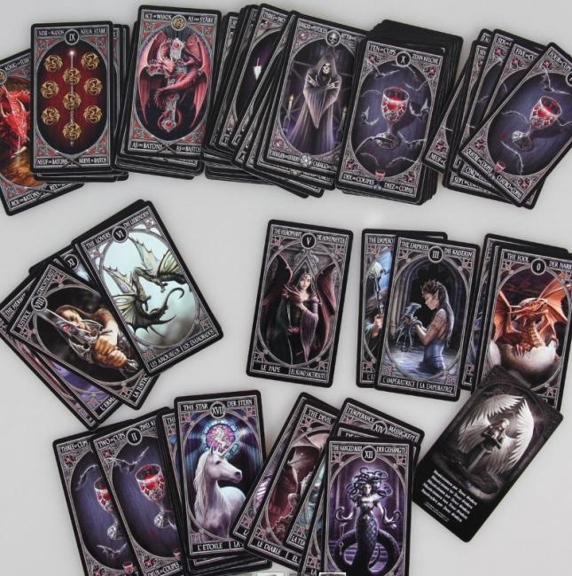 Renowned worldwide for her breathtakingly beautiful fantasy artwork, Anne Stokes delights fans yet again with this gorgeous tarot deck. This exquisitely crafted deck offers a compelling gothic twist on the traditional Rider-Waite-Smith suits. The wands are themed to mighty dragons. Cunning vampires have replaced the cups. Skeletons stand in for pentacles, and the swords have become angels. Use this inspiring tarot to explore strange magical worlds, call upon inner strength, understand dark urges, and test the limits of your imagination.