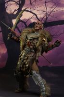 There is some nice mixed media pieces here, and the inclusion of the fur on the shoulders and legs works great. The saber teeth look decent, although there are some mold lines on a few of the edges. The sculpting and paint on the various pieces of armor give the impression of metal, when they are all made of plastic.