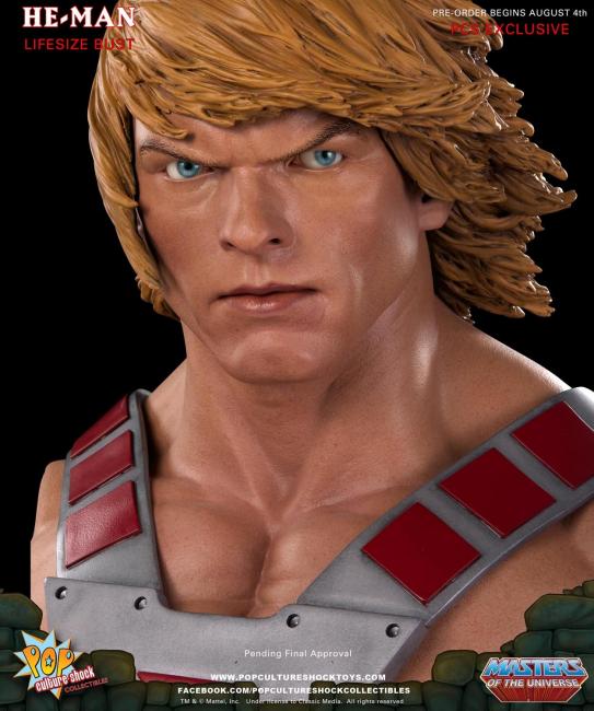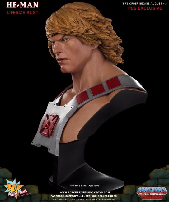 Bysta He-Mana vytvořená podle předlohy figurální řady the Masters of the Universe bust line vycházející z grafického návrhu je vysoká cca 20 cm s detailním zpracováním.