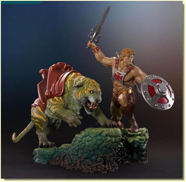 Sousoší He-Man a Battlecat vytvořené podle předlohy figurální řady the Masters of the Universe series vycházející z grafického návrhu je vysoké cca 58,5 cm každá soška s detailním zpracováním.