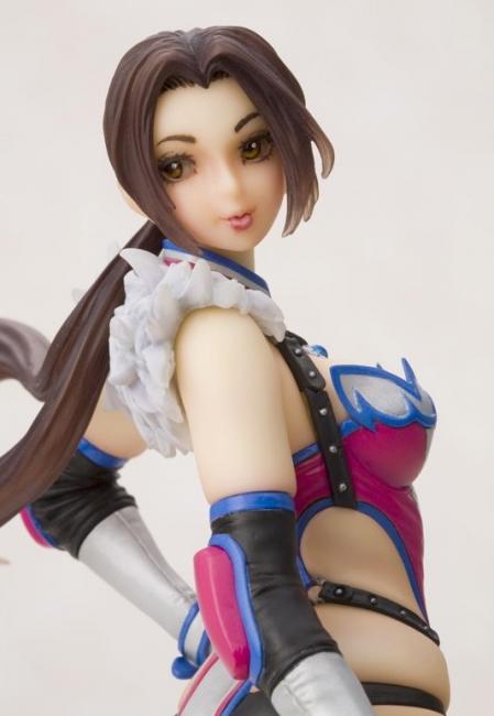 Jaycee stands on her tip toes, stretching her legs and further emphasizing her amazing physique. A fringe of feathers surrounds her shoulders while a plumed wrestling-style mask (that still lets her hair flow behind her in two long tendrils) hides her identity in the competition. You can even display her as the mysterious Jaycee or as Julia Chang with an included interchangeable unmasked head! Standing slightly over 20cm /8 inches tall (1/7 scale) on a special display base, Jaycee was sculpted by Busujimax (Takaboku Busujima) with special attention to her intricate costume and hair. The masked fighter is a fantastic addition to your Tekken Tag Tournament 2 bishoujo statue collection!