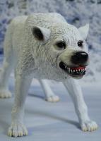 Next, there is Ghost with the scale being a little small - he is about 5 1/2" inches tall at the shoulder and 12 inches long nose to butt, while Jon is 11 5/8" tall - and while they upped his size from the very first prototype, he could still stand to be a little bigger. His internal scale seems off as well, with a head too large for his body. Along with seeming to large for the body, the head itself seems off a bit when it comes to shape. The eyes are too round, the snout is too long, and even snarling.