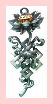 Nekonečný uzel, symbol dlouhého života a věčné lásky, s čistotou lotosového květu, ukazuje vzájemnou závislost všech věcí.