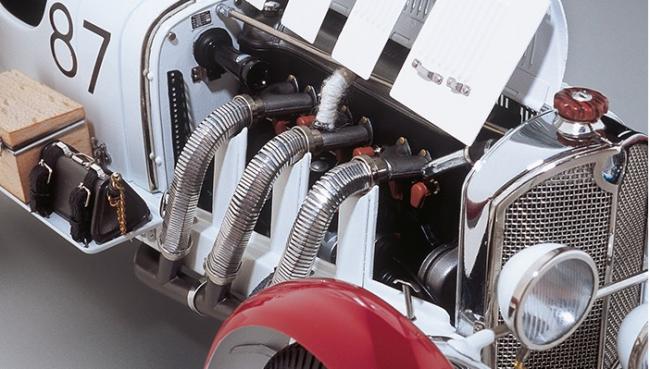 Here comes the perfect replica of the unforgetable champion car. After extensive and time-consuming research, many details that are important in presenting the original look of the 1931 Mille Miglia victor were uncovered. All these details are incorporated into the precision model, composed of 1,885 parts, that is being offered to you.