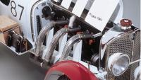 Model auta pro sběratele Mercedes-Benz SSKL Mille Miglia, 1931, ve stříbrném laku vytvořená podle předlohy originálu designerským týmem v měřítku 1:18 při věrném zachování detailu a kvality zpracování.