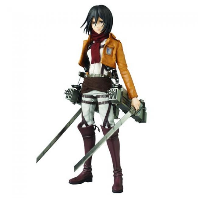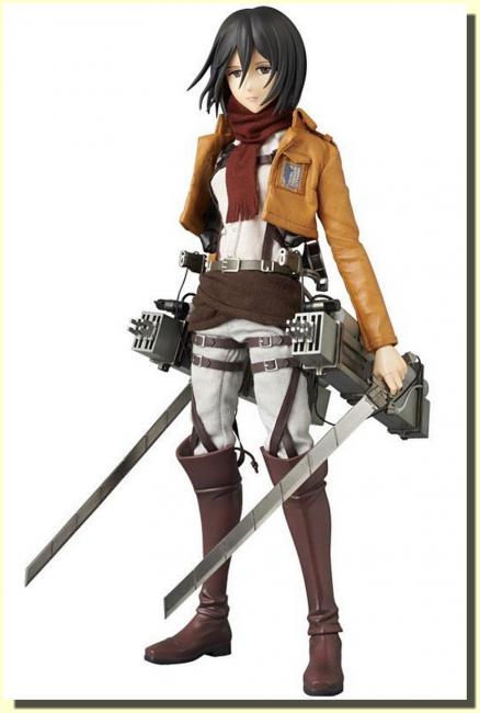Attack on Titan Mikasa Ackerman Real Action Heroes Figure: Mikasa Ackerman from the anime Attack on Titan stands 30 cm/12-inches tall as a Real Action Hero (RAH) action figure! Mikasa Ackerman features with outstanding details that include a realistically textured costume that includes her Scouting Legion cloak, Three Dimensional Maneuver Gear (which swords can be placed inside of), interchangeable wrist and hair parts, a movable stand, and 2 different facial expressions. Ages 15 and up.