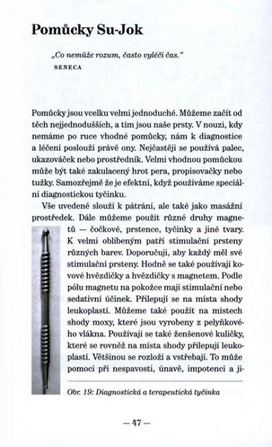 Su-Jok je diagnostická a terapeutická metoda, která využívá podobnosti na rukou a nohou vzhledem k celému lidskému organismu. V Koreji se nazývá Onnuri Medicine, což doslova znamená celý svět. V rámci alternativních léčebných systémů je nesmírně efektivní, protože se jedná o specifickou akupresuru rukou a nohou, která léčí bez užívání jakýchkoli medikamentů. Za krátkou dobu si ji osvojí kdokoli, nevyžaduje žádné finanční investice a poskytuje účinnou pomoc jak při chronických problémech, tak v naléhavých případech. Navíc je velmi pohodlná a komfortní a je možné ji provádět takřka všude.
