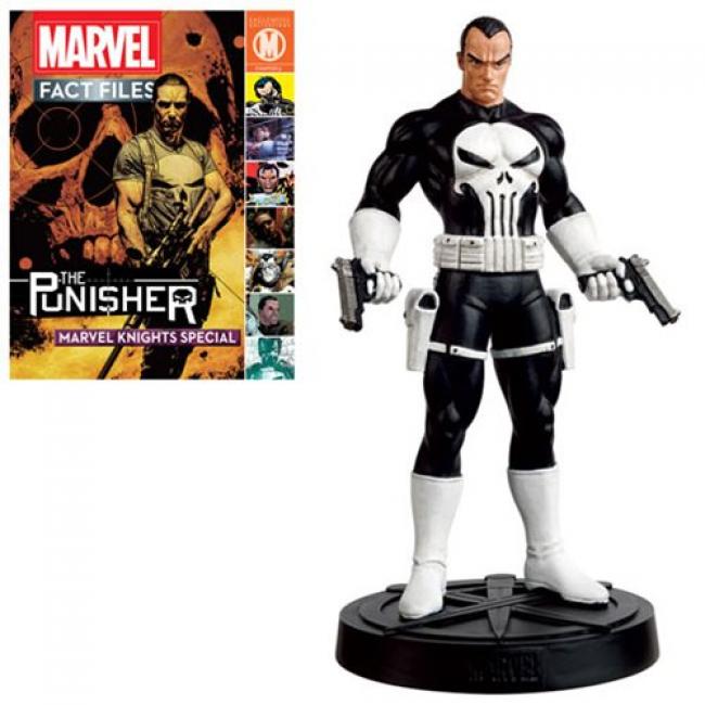 Marvel Avengers Fact Files Punisher Statue with Magazine: The Marvel Knights specials continue with Frank Castle, aka The Punisher! Posed ready to take on Marvel s criminal underworld, this Punisher statue stands approximately 5-inches tall and comes complete with a 20-page magazine detailing the character s distinguished publishing history. Ages 14 and up.