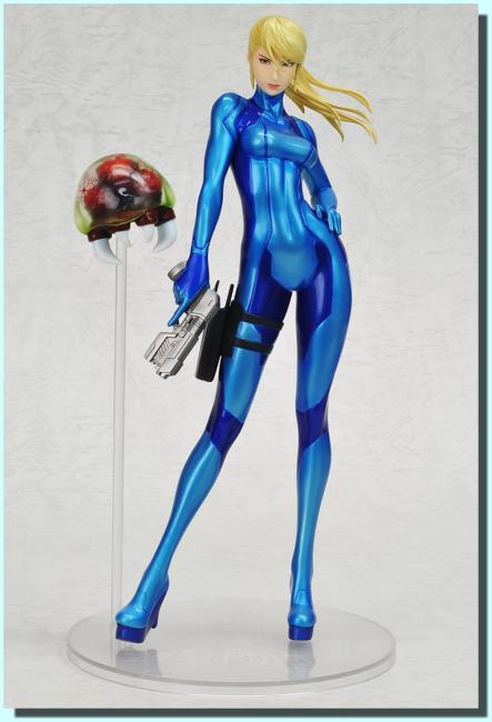 Add the strongest (and sexiest!) bounty hunter around to your shelf! Samus Aran is in her Zero Suit from Metroid: Other M. The 22 cm/ 8 1/2-inch action figure comes with Baby Metroid and a gun, too! Add the strongest (and sexiest!) bounty hunter around to your shelf with this Metroid Other M Samus Aran Zero Suit Statue!