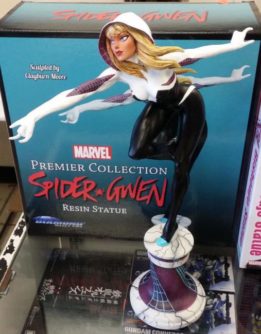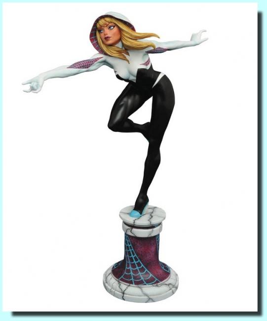 Soška Spider-Gwen vytvořená podle předlohy figurální řady the Spider-Woman of Earth-65 Series vycházející z grafického návrhu Clayburn Mooreho je vysoká cca 30 cm s detailním zpracováním.