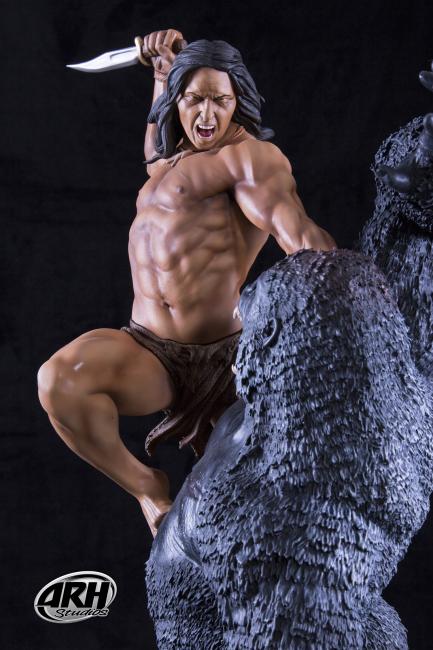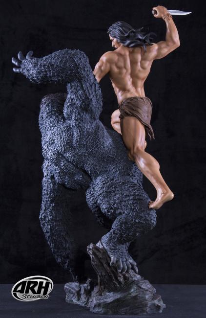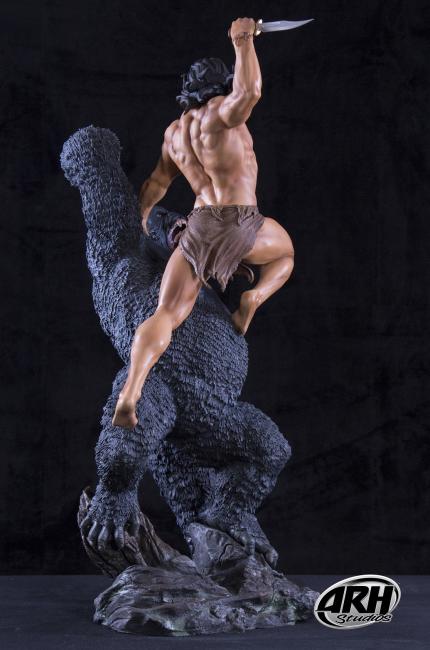 In this magnificent 1/4th scale Polystone statue sculpted by Alex Pereira and Ehren Bienert you have a great depiction of this great legend in a primal battle with a gorilla. The EX edition features an extra exchangeable hand holding a broken spear shaft.