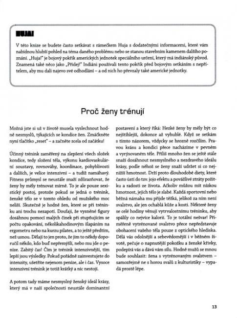 Všichni známe vábení fitness průmyslu, s nímž se potkáváme v téměř každé reklamě. Právě ženám, které se více věnují svému tělu a zdraví, se nabízejí různé dobrodružné programy od elektromagnetické stimulace až po fitness na trampolíně. Znamená to asi tolik: Pokud se přihlásíte právě do tohoto studia, nebo si objednáte přesně tohle nářadí, úspěch tréninku se zázračně dostaví zcela automaticky. Přirozeně, jde o přitažlivou představu, že kondici i zdraví si můžeme jednoduše koupit. Abychom uspokojili své svědomí, že správně investujeme do kvality svého života, vydáme se do prvotřídních fitcenter a objednáme si nejdražší výživové doplňky, jaké trh nabízí. Tento balík peněz ale udělá dobře někomu jinému – opět jednou účinně zapracoval marketing fitnessového a lékařského průmyslu. Důležité ale je, že jste si obstarala tuhle knihu. Možná jste ji dostala jako dárek - na tom ale nezáleží. A pravděpodobně už tušíte, co vám teď musím říct: Fitness nemusí stát žádné peníze. Nepotřebujete fitness centrum, ani nějaké nářadí, které je trendy. Dokonce ani činky!