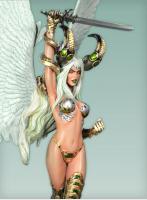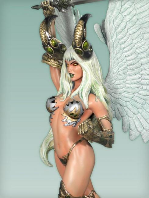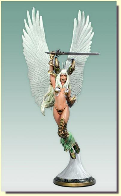 Standing approximately 21" tall, the 1/6 scale winged beauty is presented in a dramatic sword-wielding pose showing the Angelus as she soars into battle.