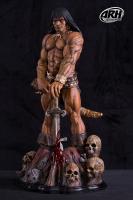 Featuring a mud mound with the remains of his enemies buried under his feet, the Barbarian holds his blooded sword as a symbol of his victory over his enemies with skeletons and bones scattered across the base, a huge ax and a sharp sword and scabbard, this magnificent statue is an special addition to any Frazetta’s fan collection.
