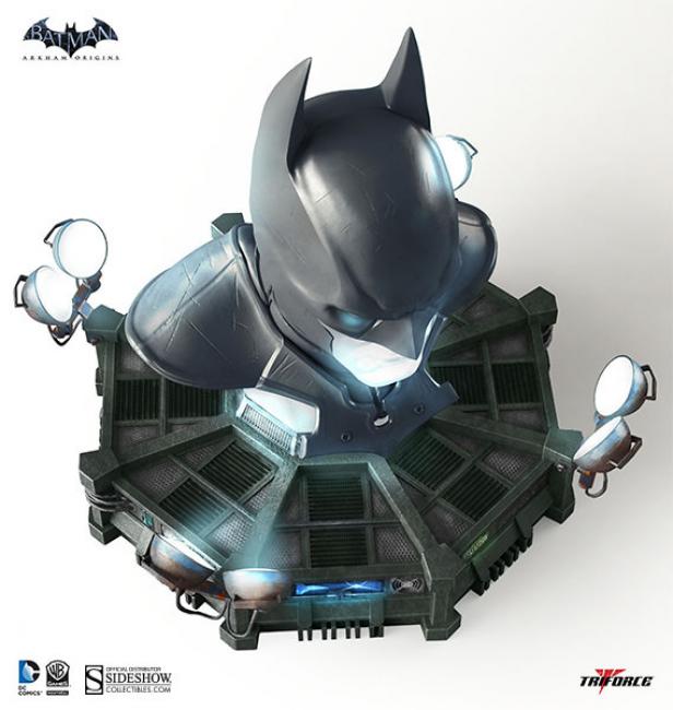 Intricately crafted and cast in polystone, it features working LED effects modeled to mimic the Batcave design and technology.