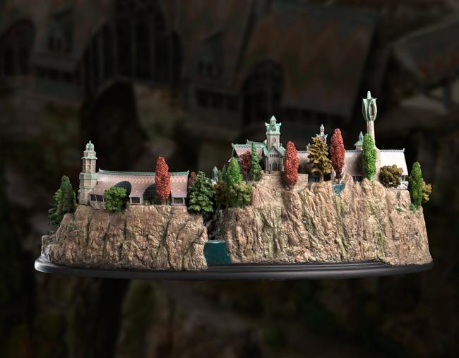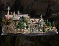 Model skrytého útočiště Rivendell vytvořeného podle předlohy figurální řady Pána Prstenů Series vycházející z filmové hry je vysoký cca 20 cm s detailním zpracováním.