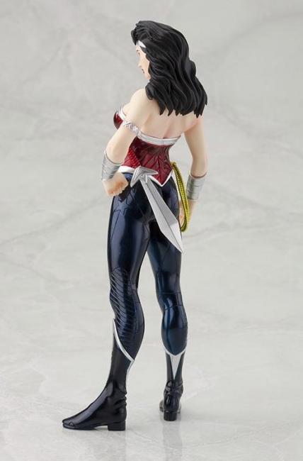 Standing 7 ½ inches tall (in the ARTFX+ 1/10th scale), Wonder Woman was sculpted by master artist Atelier Bamboo. She has magnets in her feet for perfect stability on her included display base (with Justice League logo), and naturally she’ll look great on your shelf next to the rest of her powerful allies. Stay tuned for the other members of the team.