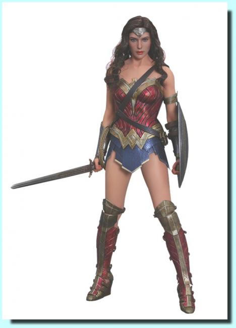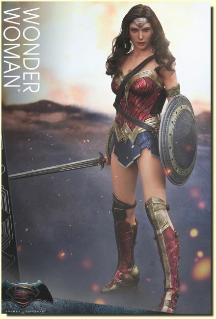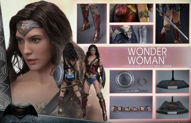 The movie-accurate Wonder Woman collectible is specially crafted based on the image of Gal Gadot as Wonder Woman in the film and features a newly developed head sculpt with long curly dark brown real fabric hair and Wonder Woman s signature tiara, newly developed female body, specially tailored armor, detailed re-creation of Wonder Woman’s weapons, and a Batman v Superman: Dawn of Justice themed figure stand.