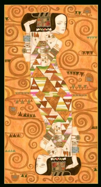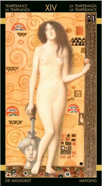 Luxusní zlatá sada symbolizující především smyslnost, něhu a cit. Tarot inspirován mistrem je v této jedinečné podobě obohacen zářivým zlatým tiskem, zesilujícím tak intuitivní vnímání, líčící emotivně lásku a smrt, smyslnost a znovuzrození v symbolech zachycujících atmosféru obestřenou tajemnem a spiritualitou.