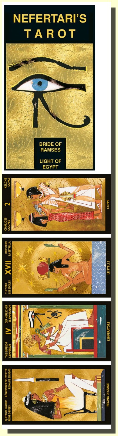 Tento nádherný Tarot představuje mystéria z Nilského údolí viděný jejíma nadčasovýma očima.