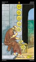 Profesionální Univerzální tarot v provedení velikosti XXL ztvárněný italským mistrovským ilustrátorem Robertem de Angelisem, který se inspiroval ikonami podle Artura Edwarda Waitea, zakladatele anglické školy tarotu.