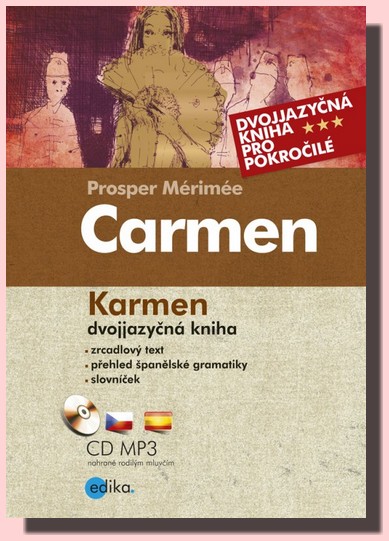 Učte se španělsky poslechem příběhu Carmen! Francouzský spisovatel Prosper Mérimée napsal za svůj život více než 25 novel. Mezi jeho nejznámější díla patří samozřejmě Carmen (1847), která posloužila v roce 1874 Georgesi Bizetovi jako předloha ke stejnojmenné slavné opeře. Příběh o krásné a lehkomyslné ženě, která láme nejedno mužské srdce a jejíž přelétavý život končí rukou odmítnutého milence, se stal klasickým světovým dílem. Odehrává se v jižních částech Španělska a velice výstižně zobrazuje jak národní temperament, tak jedinečný kolorit místní krajiny. Později podle něj byly natočeny filmy, slouží např. i jako podklad pro muzikály. V knize kromě novely samé naleznete i její český překlad, jazykové i historické komentáře pod čarou a základní přehled španělské gramatiky. Povídku si můžete rovněž poslechnout na přiloženém CD namluvenou autorem - rodilým Kolumbijcem. CD obsahuje nahrávky ve formátu MP3. Věříme, že si četbou zdokonalíte své znalosti španělského jazyka.
