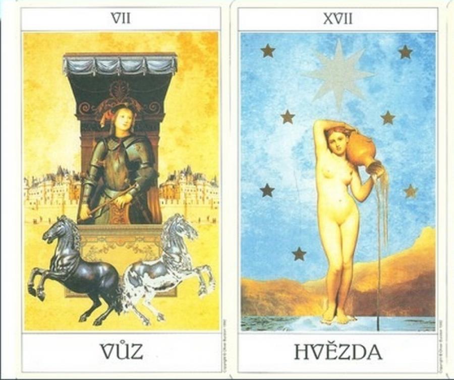 vhodné pro začátečníky, 22 karet 10x19 cm a kniha o 210 stranách s podrobným výkladem
