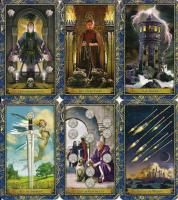 The Wizards Tarot is a tarot deck and a school of magic, where the majors feature the professors and the minors feature the students. Designed by Corinne Kenner and illustrated by John Blumen, it has photo-realistic digital art and a distinct Harry Potter feel.