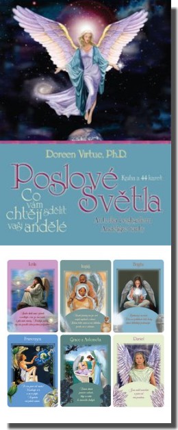 Kniha pak obsahuje podrobnější výklady a konkrétní poselství. Poslové světla vám pomohou zjistit jaké ja vaše životní poslání, zda je daná osoba vaším duchovním partnerem, co udělat s vaší prací a životem, a zodpoví vám i mnohé další otázky. Doreen při vytváření tohoto kompletu čerpala ze svých dlouholetých zkušeností s Andělskou terapií.