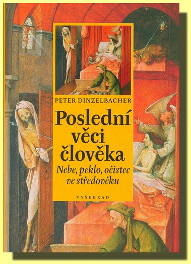 Německý historik Peter Dinzelbacher, i u nás už známý svým dílem Světice, nebo čarodějky, zde obrací svou pozornost k tématu, jež tvořilo středobod středověkého myšlení, ba života. Strach z konce, z toho, co přijde po smrti, propůjčoval – a propůjčuje – křídla lidské fantazii. Středověk však dovedl „onen svět“ líčit v barvách tak divuplných jako snad žádný jiný věk. Ve svém poutavě napsaném díle se autor soustředí jak na motiv očistce, tak na vývoj představ o nebeském království vyvolených a peklu zavržených. Svým způsobem tak doplňuje obraz, který si český čtenář mohl nedávno učinit na základě Le Goffovy rozsáhlé studie Zrození očistce.