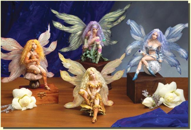 Kris Hamrick s fantasy art come to life as 4 enchanting fairies. Handcrafted for intricate detail, unique poses, breathtaking aura. With silky mohair.