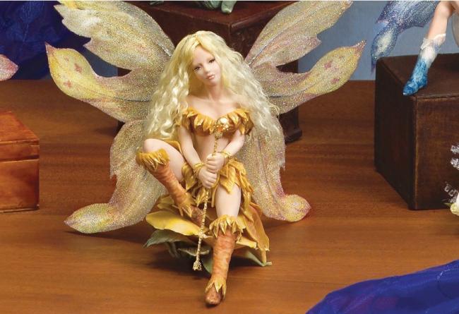 Each fairy figurine in this collection has hair is crafted from silky, genuine mohair and anchors a sparkling tiara