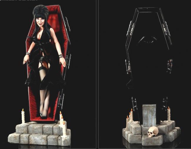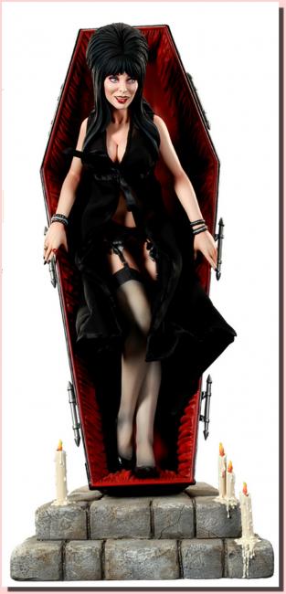 Undressed in a sheer fabric negligee, the Mistress of the Dark comes to life in all her sexy and satirical splendor. Never one to be shy or shrinking, we have ensured that the queen of Halloween shows off her best assets in this 1:4 scale Premium Format figure. The unabashedly outspoken siren has been gracing living rooms around the world for decades, add the Elvira in Coffin Premium Format figure to your collection, and invite her in to stay.