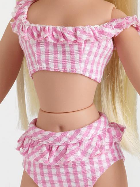 Pink and white check bikini bathing suit.