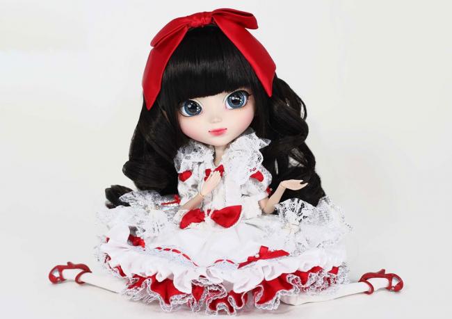 Pullip Snow White Princess Series 2 Doll! Stands 12-inches tall. Includes apple mini-plush, a white dress with a large red ribbon, doll stand, and more! With a gentle face, red lips, and skin as white as snow, it is the Pullip Snow White Princess Series 2 Doll! This 12-inch tall Pullip doll features a white dress with a large, attention-grabbing red ribbon, gorgeous silver lace decor, an apple mini-plush that she can hold to go with the theme, and a doll stand. Snow White s black hair is beautiful with vertical curls with lots of volume and a sheen that shines against the white dress. "The white fingertips that touched the forbidden fruit, the luscious smell of honey that overflows under the alluring skin heard someone s voice beyond the ceasing conscious. . . Feel Like So." Age: 15+ Size: 12-inches tall