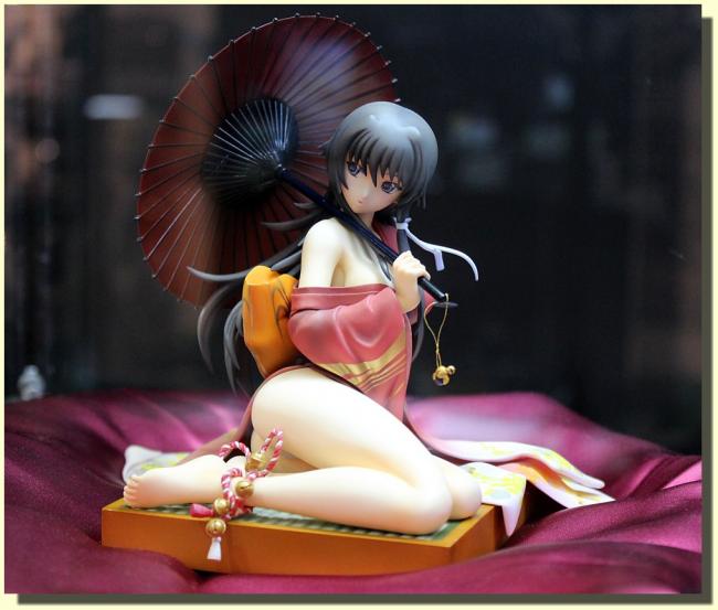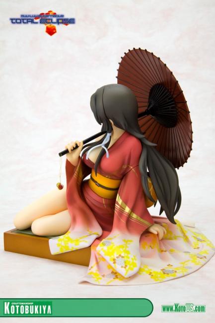 She is from a TV anime series known as Muv-Luv. This statue is obviously of her in her off hours. She is quite attractive in this pose, with the details on her kimono or with the little trinket hanging from her umbrella .