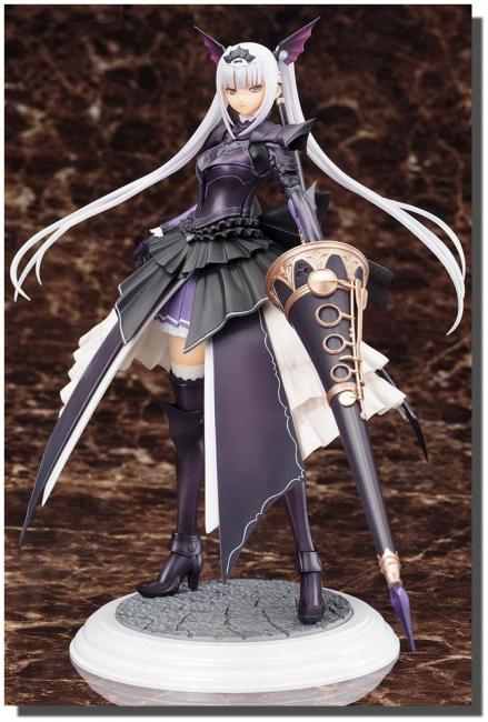 The lovely ladies of the “Shining” series from SEGA have made for an incredible line of Ani*Statues, and up next is the first to step out of the latest game Shining Resonance: EXCELA NOA AURA! A noble dragon knight who also happens to be the imperial princess, Excela stands ready for battle. The princess wears a highly decorated armored dress with multiple layers of fabric and panels to protect her and look good at the same time. Her large, flaring skirt is open at the front to provide Excela room to maneuver, and intricate ruffles and bows adorn the white, purple, and black ensemble. The dragon knight s torso is encased in sleek purple armor, and her long white hair is held perfectly in place by a tiara and two hair pieces with purple dragon wings. Standing with her feet apart for stability, Excela holds at the ready her massive purple lance, itself showing off fantastic sculpting and painted details like jewels and gold musical elements. Sculpted by Shou Kojima, Excela Noa Aura stands just under 8 ½ inches tall (1/8 scale) on a rocky display base. With a fierce expression on her face and her lance in hand Excela is the perfect guardian for your Shining collection!